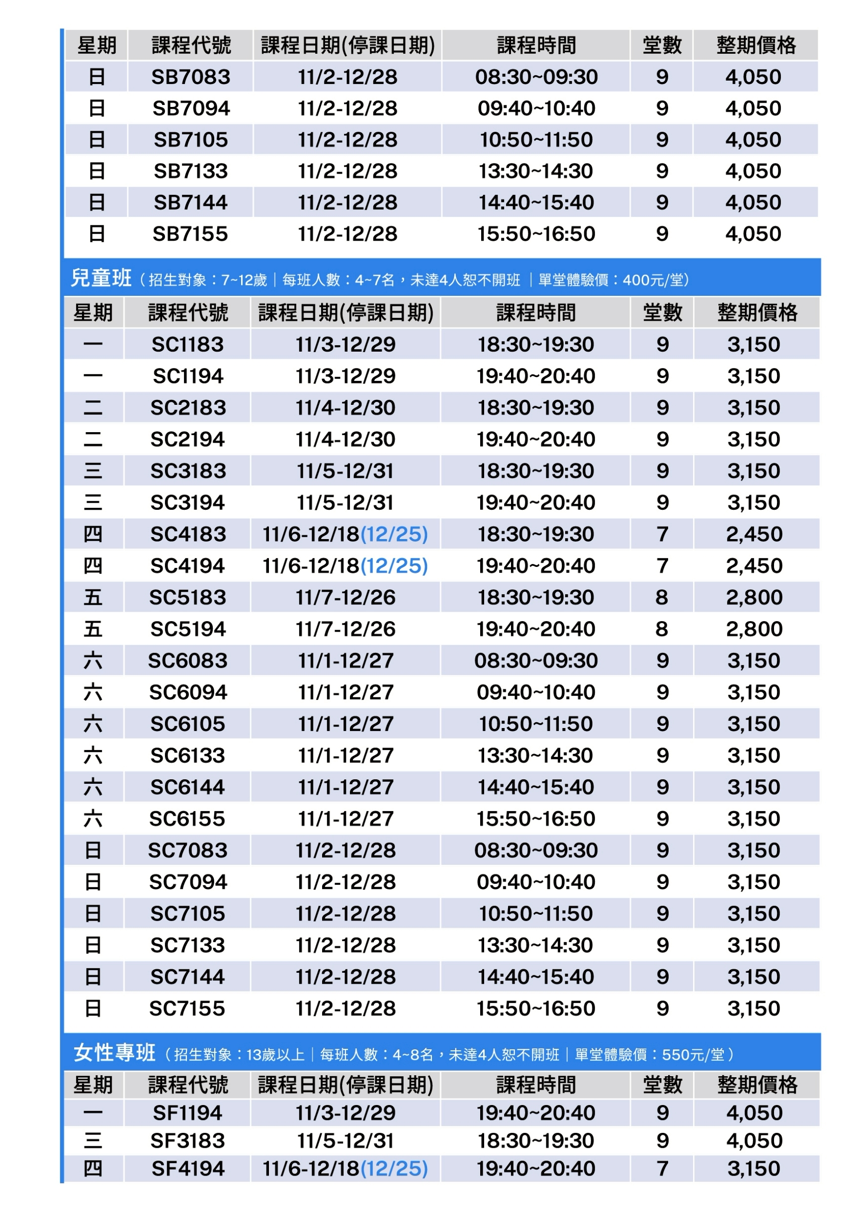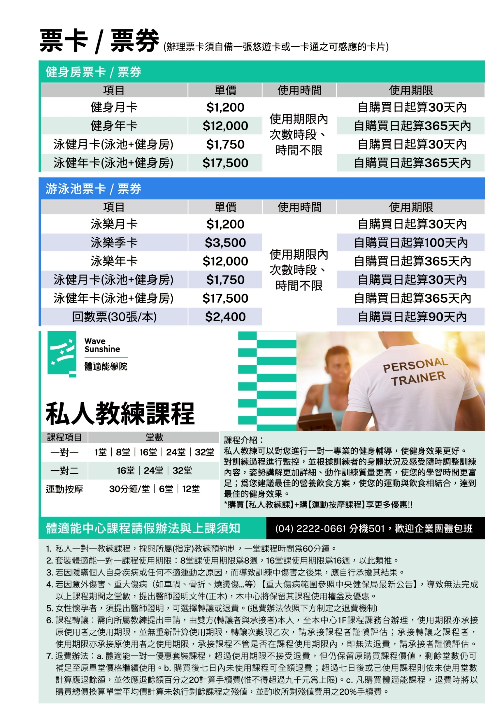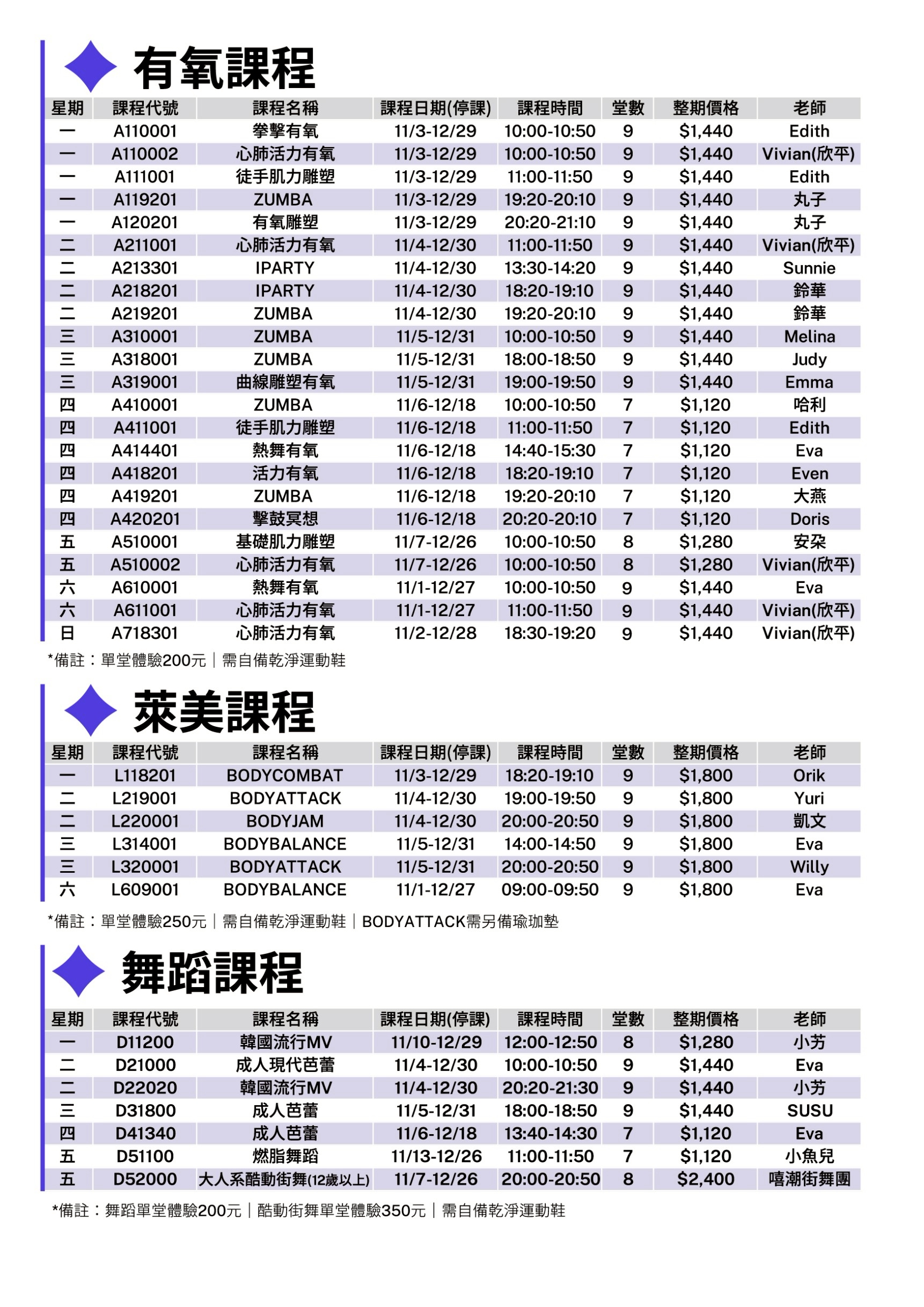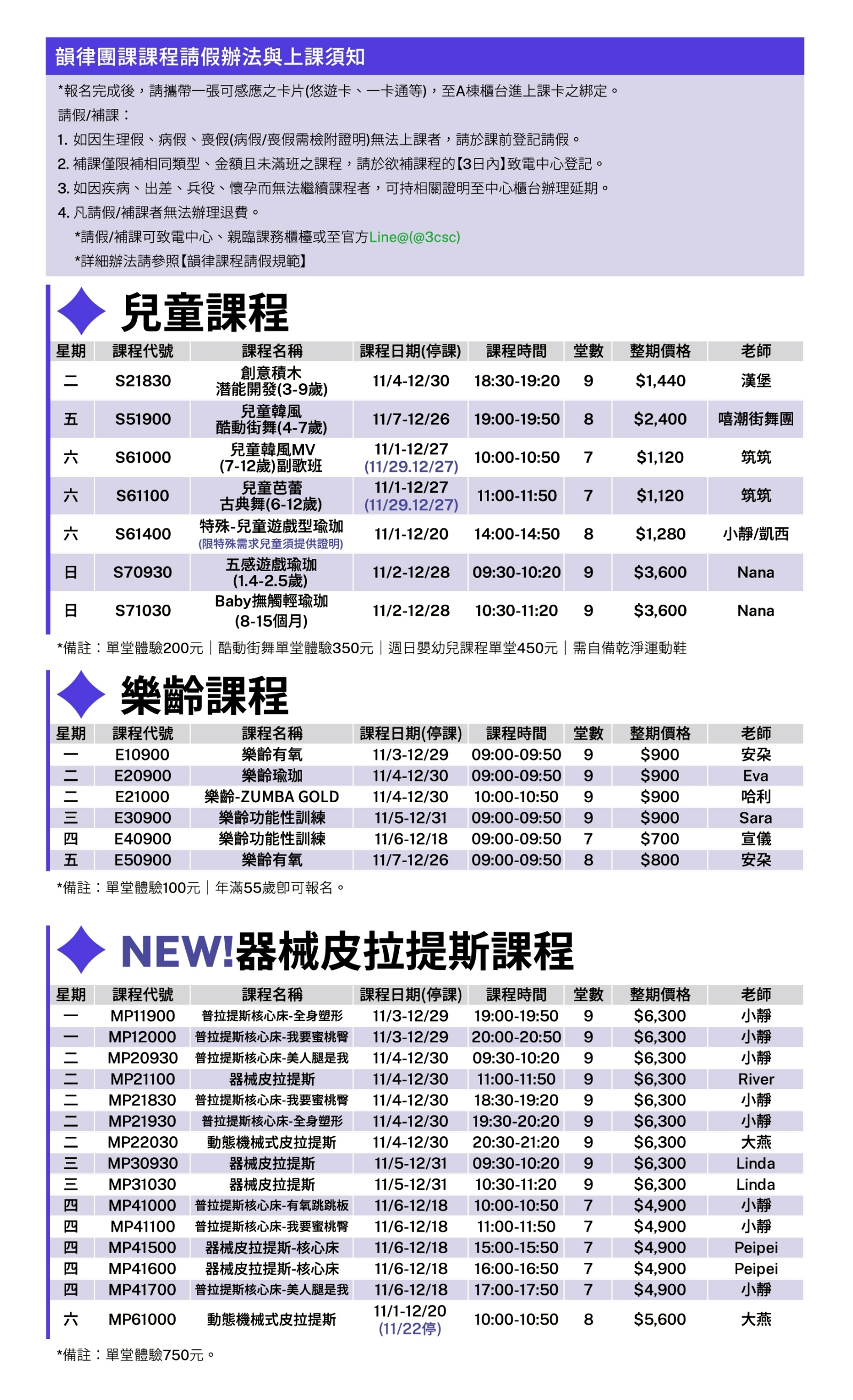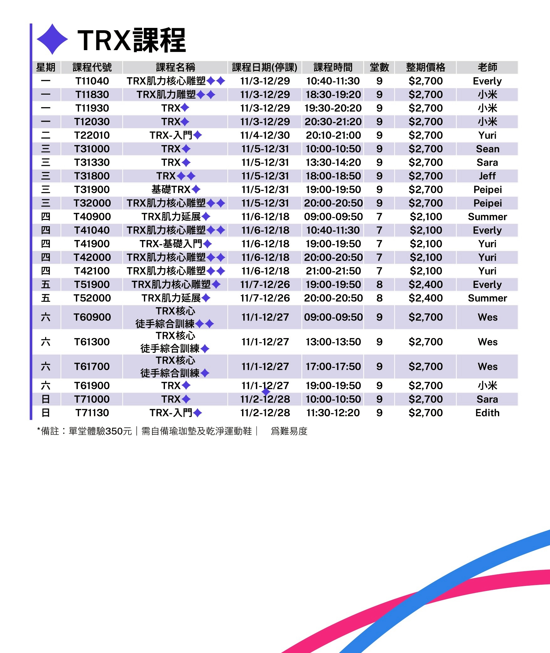 ☆報名瑜珈、有氧雕塑、TRX課程請攜帶瑜珈墊