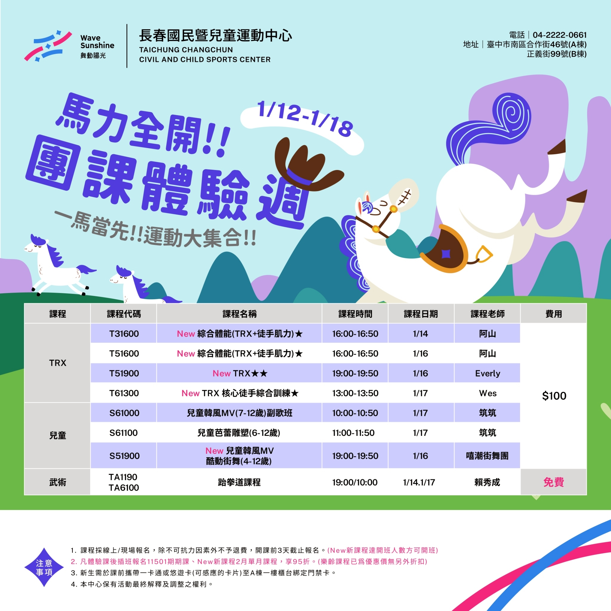 1月團課百元體驗活動